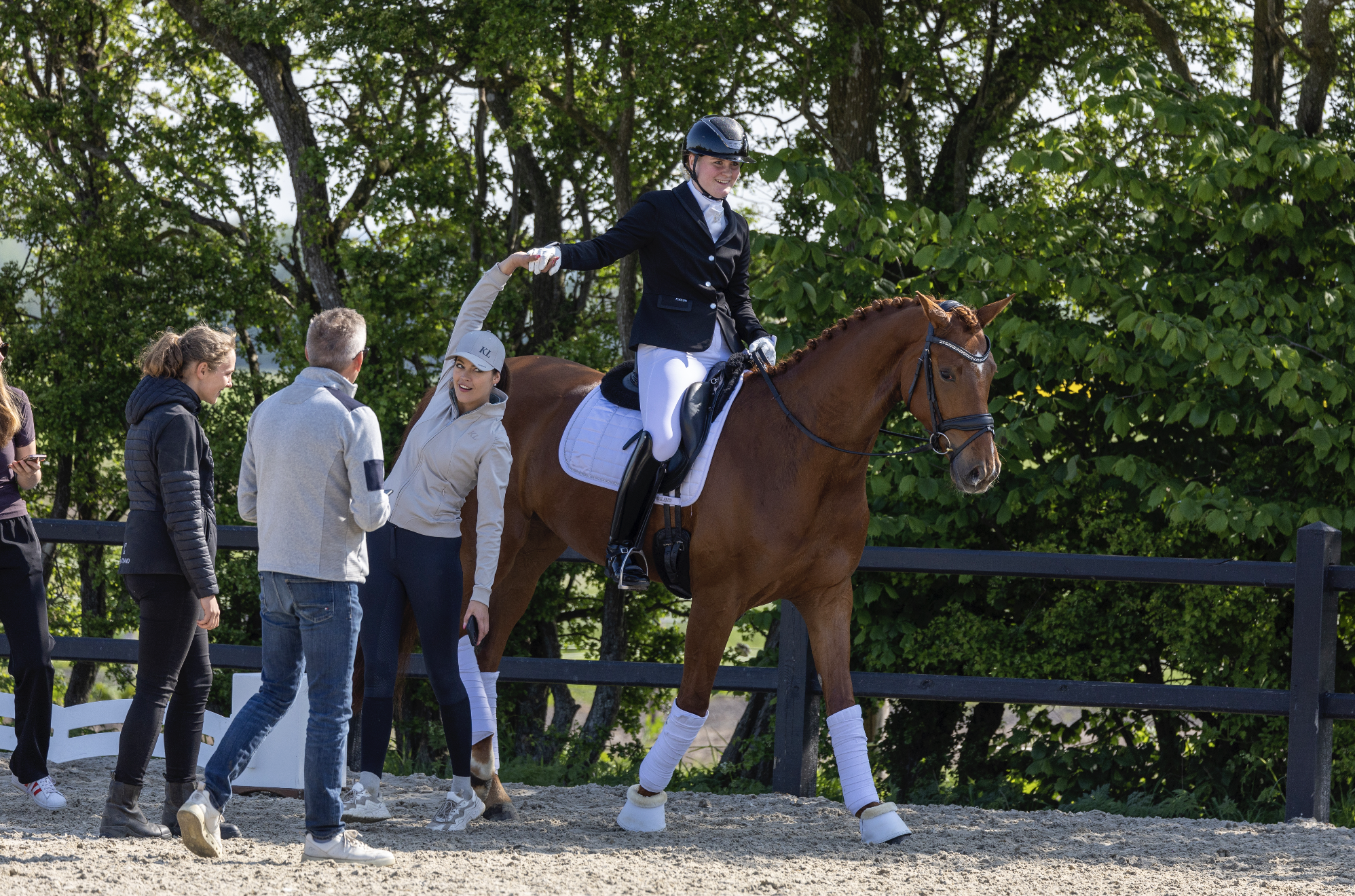 Our grooms are there to help every step of the way. From preparation of the horses, making sure they are washed, braided and saddled. Additionally, assisting in the warm-up and the way to the show arena. Finally, they film their rider, and are ready and prepared to take care of the horse and wash the horse once the rider has finished their program.